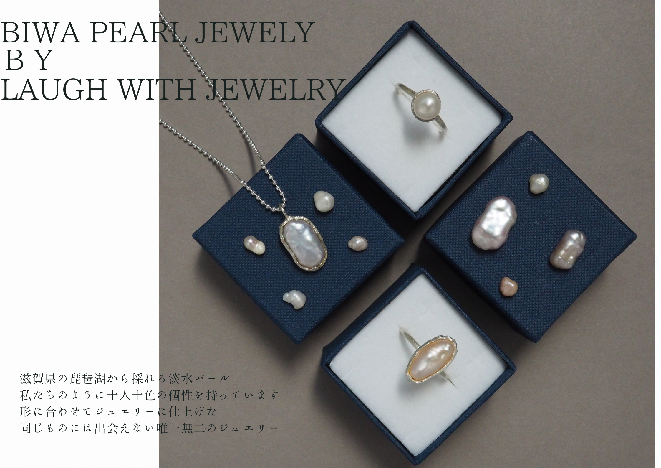 全部一つひとつ違うが落ち着いた個性を放つジュエリーに仕立てました